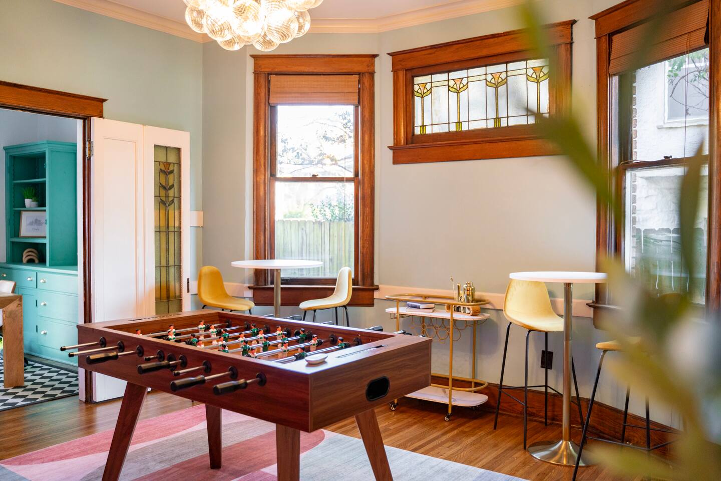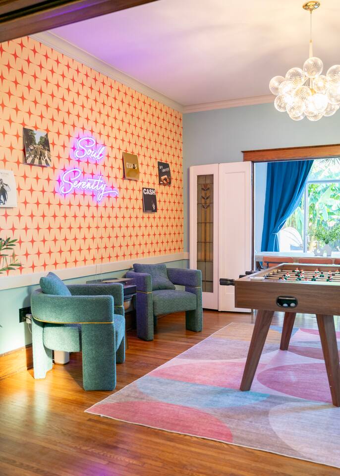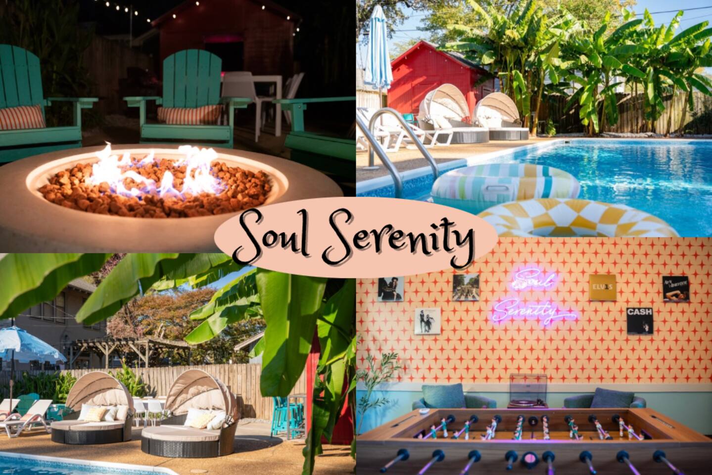 Soul Serenity welcomes you with playful style and warm Memphis charm. Relax by the private pool, sip a drink at the tiki bar, or gather around the firepit for laughter under the stars. Inside, spin vinyl, enjoy games, and sink into cozy, comfortable bedrooms. With smart TVs, a stocked kitchen, and thoughtful touches throughout, it feels instantly like home. Just minutes from Beale Street, Sun Studio, the zoo, and Graceland. Stay, relax, and let the Memphis vibe make your trip one you’ll replay.