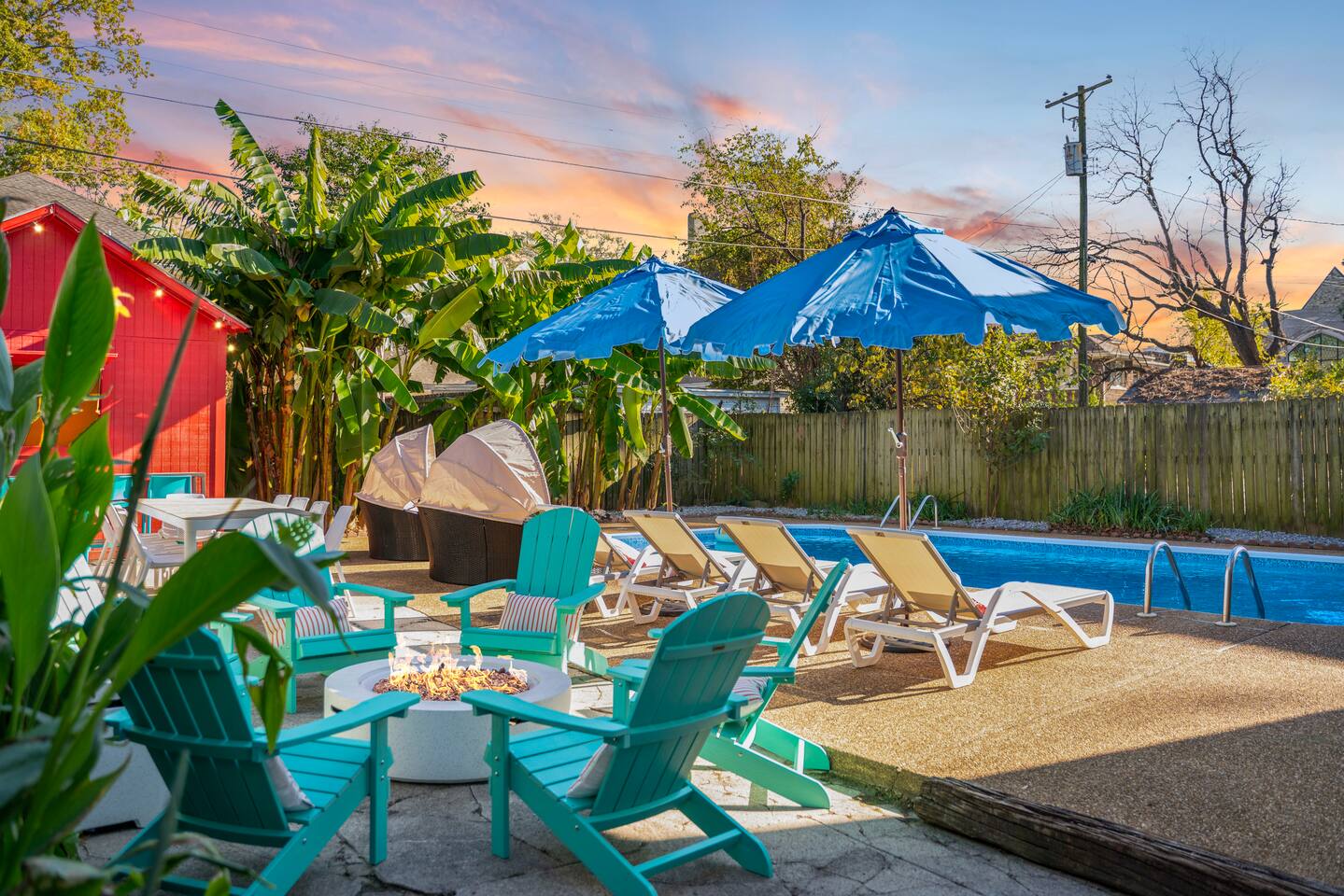 Welcome to Soul Serenity, a stylish and immersive 3-bed, music-themed getaway inspired by the legendary rhythm of Memphis. Just minutes from world-famous landmarks, live music venues, historic museums, and iconic Southern culture, this retreat blends creativity, comfort, and fun. Whether you're here to experience Beale Street nightlife, tour Graceland, or enjoy a relaxing poolside staycation, Soul Serenity is designed to feel unforgettable. The Space Key Features: 🎸 Memphis Music Theme Throughout 🔥 Poolside Firepit 🏖 Sun Loungers + Daybeds 🎶 Record Player + Vinyl Collection 📺 Smart TVs in Every Bedroom + Living Room 🎯 Game Room with Foosball + Bar ☕ Keurig Coffee Station 🧺 Washer/Dryer 🌐 Fast Wi-Fi 🍹 Tiki Bar + Outdoor Dining 🧒 Family-Friendly Amenities 🛏 Rooms & Layout Master Bedroom: 🛏 King Bed + Queen Pull-Out Sofa 📺 55” TV 🎤 Music-inspired décor + vibrant, soulful accents Bedroom 2: 🛏 Queen Bed 📺 55” TV 🎷 Vintage touches and cozy ambiance Bedroom 3: 🛏 Two Queen Beds 📺 55” TV 🎵 Rhythm & blues-inspired design 🎬 Living Room: Feel the Rhythm Gather around the 65” smart TV or grab one of the provided guitars and play your own Memphis-style soundtrack. A glowing neon “Feel the Rhythm” sign framed in vinyl sets the perfect vibe (and an amazing photo backdrop). 🎮 Game Room Lounge - A lively space for fun and cocktails: - Foosball table - Record player + iconic albums - Stylish bar with bartender set - Extra games stored in the kitchen island cabinet - Neon “Soul Serenity” sign for the perfect glow 🍳 Kitchen & Dining - Fully stocked kitchen with bakeware, cookware, utensils, and high-end appliances - Five-burner gas stove + oven - Keurig coffee maker - Indoor dining area with views of the pool - Outdoor dining + BBQ + tiki bar for warm, Southern evenings 🌴 Outdoor Oasis Relax by the sparkling pool surrounded by banana trees, lounge chairs, and cozy daybeds. Gather around the firepit for late-night stories, laughter, and stargazing. 👶 Family-Friendly Features We provide a pack-and-play and highchair to make travel with little ones easier. 🧺 Laundry A convenient all-in-one washer/dryer makes packing light simple—just load, start, and return to clean clothes. Location Highlights Just minutes to iconic Memphis stops: 🎤 Beale Street (10 min) 🦁 Memphis Zoo (5 min) 🎸 Sun Studio (8 min) 🕊 National Civil Rights Museum (12 min) 🛍 Overton Square (4 min) 👑 Graceland (15 min) Whether you’re a foodie, history lover, nightlife seeker, or die-hard Elvis fan — you’re close to it all. Your Memphis Soundtrack Starts Here Soul Serenity isn’t just a place to stay — it’s an experience. From the guitars and neon signs to the poolside cocktails and vinyl evenings, every detail celebrates Memphis’ legendary musical heartbeat. Come play, relax, explore — and make memories worth repeating.